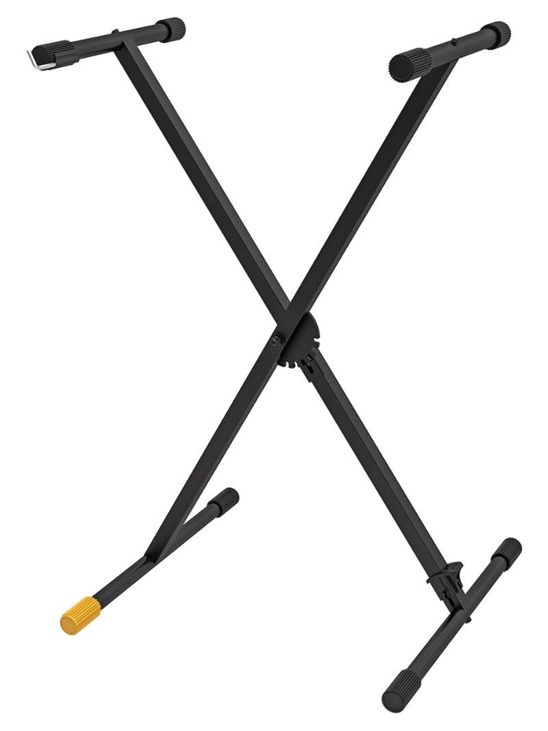 Keyboardstativ med en patentert mekanisme som gjør at du slipper å bøye deg ned. Enkeltkryss