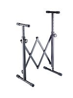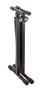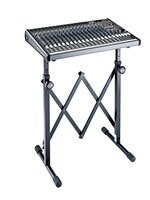 Praktisk allsidig stativ! Stativet 18826 er svært allsidig. Enten det brukes til mixerbord, skjerm, tastatur eller forsterker, er utstyret trygt på dette stabile stativet. Det er enkelt å bruke uten å måtte verktøy. Høyden på hver støttarm kan justeres med brukervennlige klemskruer. Begge de fremre gummi endekapslene kan justeres på sin aksel og dermed tilpasses perfekt til utstyrsstørrelsen. Enkel håndtering og transportvennlige dimensjoner gjør dette ideelt for turnébruk.