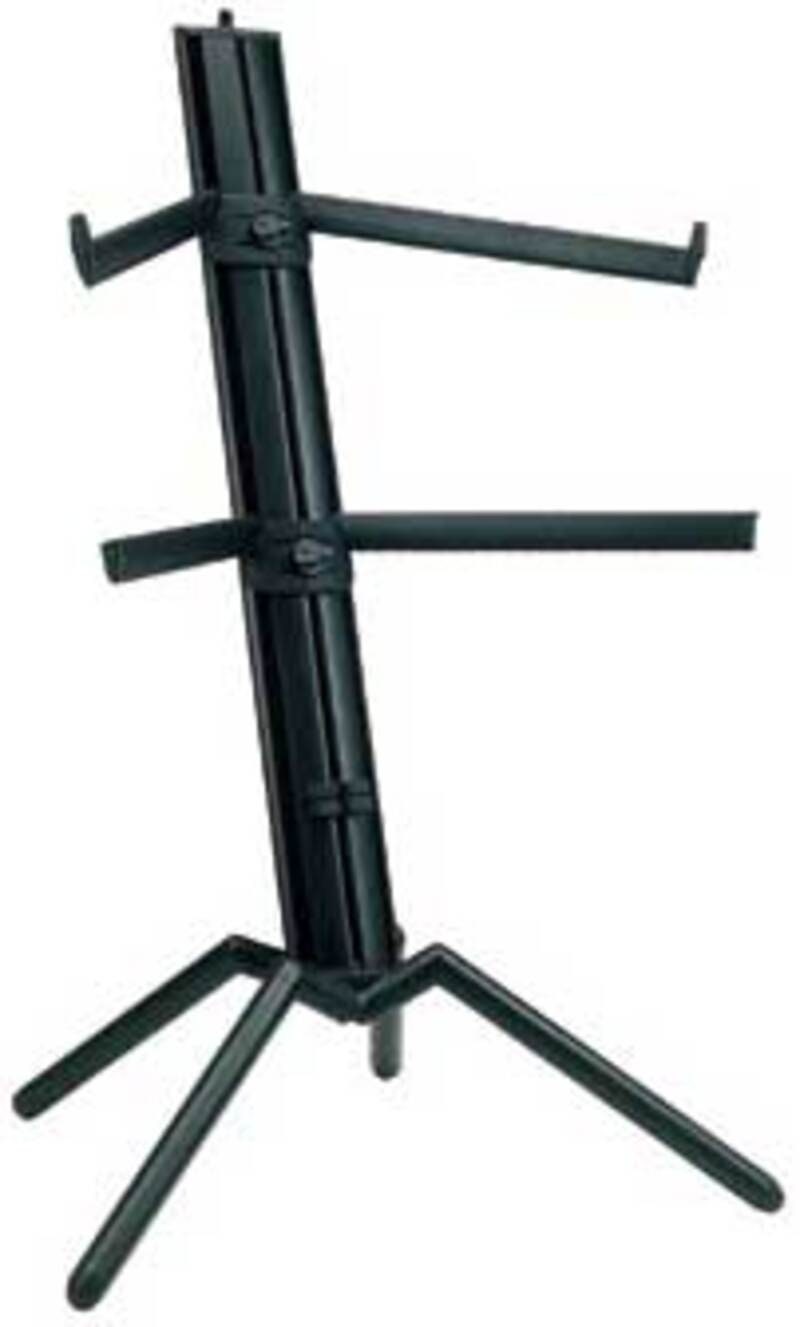 Moderne keyboardstativ med 2 sammenleggbare hyller med justerbar lengde. Svart.