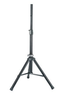 Høyttalerstativ i aluminium med fjærende sikkerhetssplint. Sort.