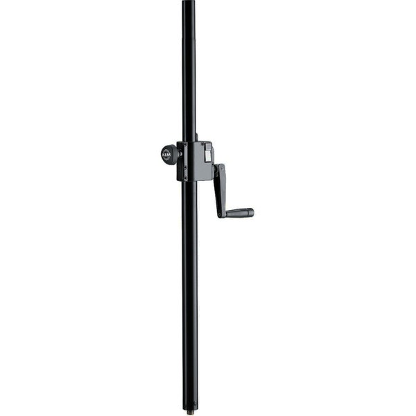2-delt høyttalerstativrør i stål med sveiv. Brukes mellom bass og topphøyttaler.