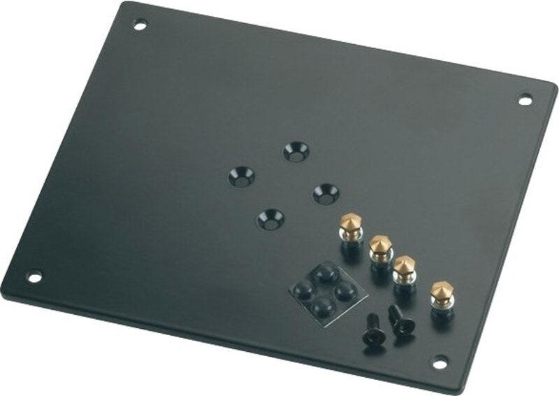 Bæreplate for høyttaler, passer høyttalerstativ 26791 og 26795. Inneholder 4 spikes og 4 gummiputer.