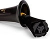 Hercules TravLite kan foldes sammen slik at det blir utrolig tett. Benbasen er kledd i sammet, noe som gjør at stativet ikke skurer inni instrumentet ditt hvis du oppbevarer det i klesstykket. Fantastisk smart og praktisk at stativet ikke trenger å ta ekstra plass i ditt klarinettcase.