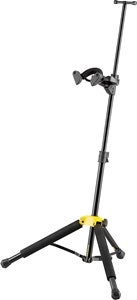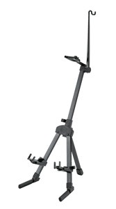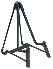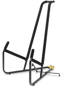 Stativ for kontrabass i solid polstret stålkonstruksjon.