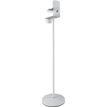 Golvstativ for større pumpflaske med hånddesinfeksjon, rund fot, hvit.