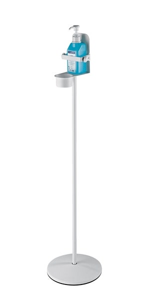 Artikkelnummer 25580310Frittstående gulvsstativ for hånddesinfiseringsflaske med pump. Høyde: 102 cm. Innvendige mål på holderen: 10,2 cm x 6,5 cm til 10,2 cm. Rund fot (diameter 27,5 cm) med gummiring for å beskytte gulvet.
