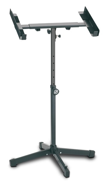Kraftig justerbart og sammenleggbart stativ i stål for miksere og forsterkere.