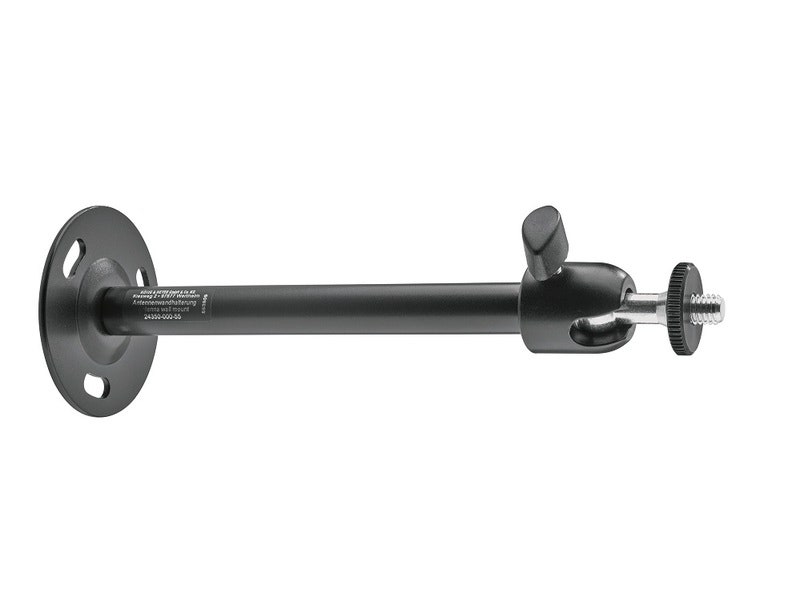 Universal veggfeste med 3/8" eller 5/8" monteringsbolt for mikrofoner og antenner. Takket være det brukervennlige kuleleddet kan festet svinges 360° og vippes 90°. Monteringsplaten har en diameter på 70 mm og veggavstanden er 205 mm.