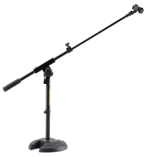 Et lavt stativ med fast høyde og teleskopbom, ideelt for å mikrofonisere trommer eller forsterkere med.