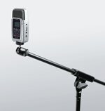 Adapter med kuleledd for å feste f.eks. kamera eller bærbart opptaksutstyr på et mikrofonstativ.