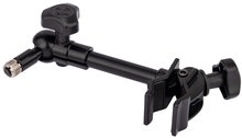 Mikrofonarm med 3/8 gjenger og feste for stativ med opp til 23 mm rørdiameter. Sort.