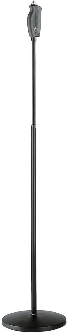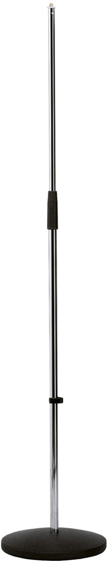 Rakt mikrofonstativ, rund fot, tredelat rør, svart.