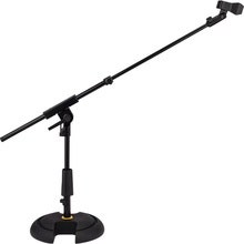 Mikrofonstativ, ekstra lavt, teleskopbom, h-formet fot, robust, sort