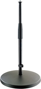 Lavt mikrofonstativ med rund fot.