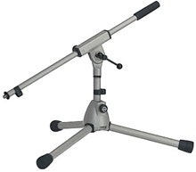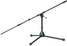 Lavt mikrofonstativ med sammenleggbare ben og 2-delt lang bom.