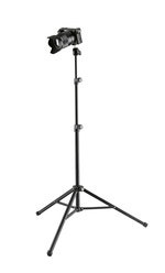 Nyttig kamerastativ for montering av kompaktkameraer, actionkameraer, webkameraer, miniprojektorer og mobile opptakere med 1/4" tilkoblingsgjenge. Kuleledd gjør at det monterte utstyret kan roteres 360° og fikseres i enhver posisjon. Tiltvinkelen kan monteres trinnløst justert opp til 90° og bæreevnen er designet for utstyr opp til 1 kg. Høyden kan fritt justeres fra 555 mm til 1355 mm via to teleskopiske ledd.