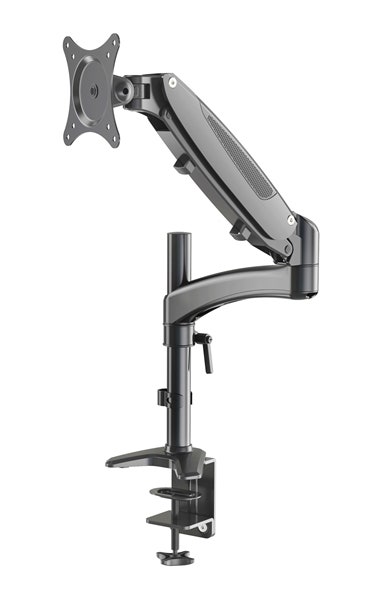 Den individuelle løsningen for arbeidsplassen din. Med denne bordfestet kan du plassere en skjerm opp til en størrelse på 32" på en plassbesparende og ergonomisk måte. Den robuste konstruksjonen i aluminium med den integrerte gassfjæren kan bære en belastning på 8 kg. Koblingsplaten er designet for VESA størrelser 75/75 og 100/100. Takket være den store, stabile bordklemmen (opp til 85 mm tykkelse), monteres hele festet raskt og kan brukes fleksibelt. Her er en høydejustering på opptil 200 mm mulig. Overarmen tilbyr ytterligere 350 mm høydejustering. Selvfølgelig kan hodet fortsatt vinkles, roteres og svinges kontinuerlig for en perfekt visningskomfort og forbedret arbeidsstilling. Den integrerte kabelhåndteringen sikrer en ryddig og profesjonell arbeidsplass.