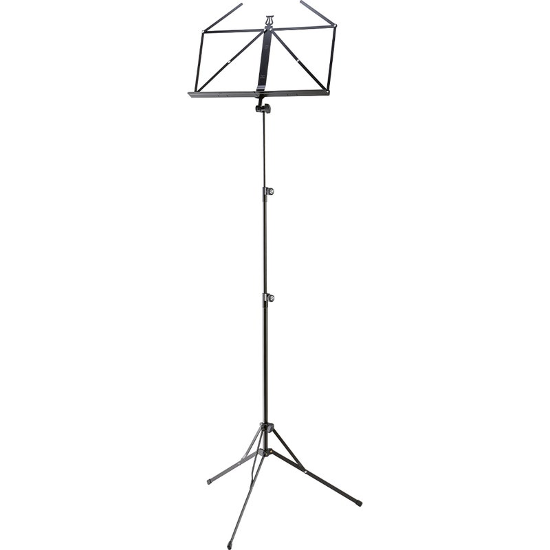 Klassisk, sammenleggbart notestativ med 3-delt teleskopstativ som kan bli høyere enn et standardstativ.