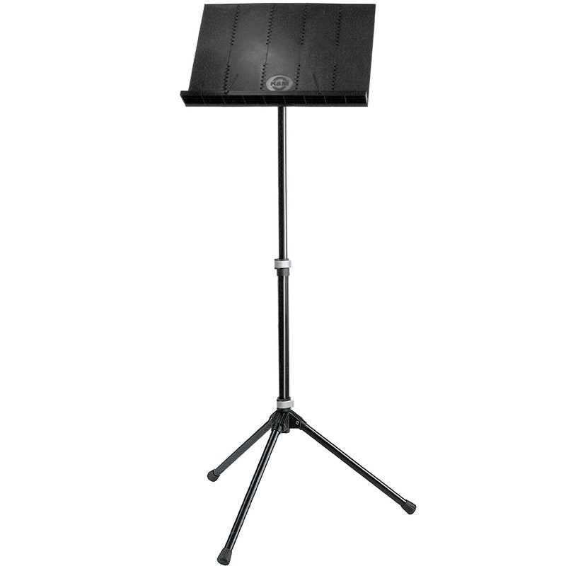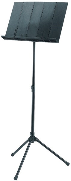 Artikkelnummer 25512120Notestativ i aluminium med stillbar høyde og sammenleggbar plate i plast. Sort.