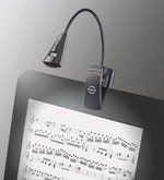 König & Meyer Music stand light "2 LED FlexLight" er en batteridrevet LED-belysning som drives med batterier eller nettadapter (medfølger ikke). Du kan feste den på materiale med en tykkelse på opptil 25mm eller stille den på en bordplate hvis du vil ha den frittstående. Passer godt til noter eller på et instrument, men like bra å feste på en bok når du vil lese i mørket.
