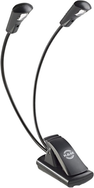 König & Meyer Music stand light "Double LED FlexLight" er en batteridrevet LED-belysning som drives med batterier. Du kan klemme den fast på materialer med en tykkelse på opptil 25mm eller sette den på en bordplate hvis du vil ha den frittstående. Passer godt til notstativ eller på et instrument, men også like bra å feste på en bok når du vil lese i mørket.