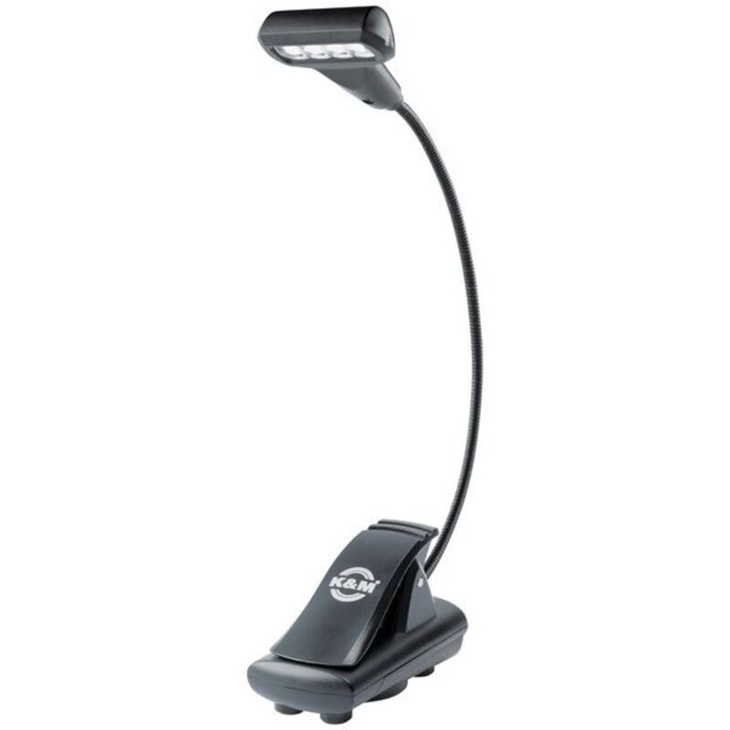 Den attraktive T-Model musikkstativampen med 4 LEDs gir et behagelig varmt hvitt lys med fargetemperatur på 3000 Kelvin. Med 2 lysstyrkeinnstillinger og den justerbare gåsehalekarmen gir T-Model komfort og allsidighet for å møte ulike belysningsbehov. Den ekstra brede klipsen (opptil 25 mm) festes til noter, bordflater osv. Den kan også brukes som stående lys. T-Model drives av 3 (1,5 V AAA) batterier (inkludert) med en typisk batterilevetid på 10 timer, eller via en AC-adapter (ikke inkludert).