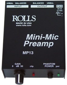 Sort forforsterker for dynamiske mikrofoner som leverer hele +28dB rent og klart signal. Drevet av 48v Phantom