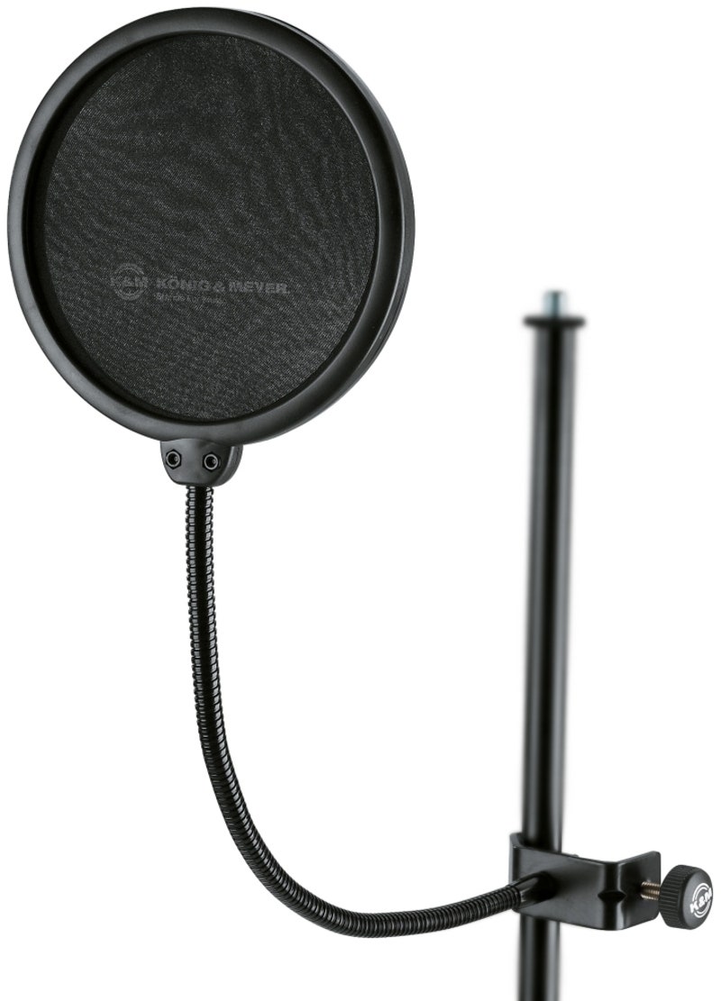 Vindskjerm med dobbelt lag nylon. 13 cm diameter. Svanehals med feste for montering på stativ med opp til 23 mm diameter. Vekt: 0,2 kg.