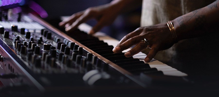 Synth, 37 keys, Wave Sequencing 2.0, 4 Layers med Vector-kontroll, 96 stereo-stemmer, 14 samtidige effekter,...