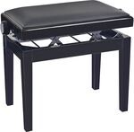 Artikkelnummer 25513976Høydejusterbar pianokrakk i massivt tre, svart høyglans finish med svart kunstskinnsete
