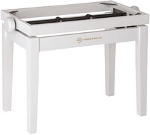 Høy- og senkbar pianopall i hvit finish med notlagring!