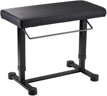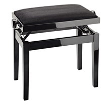 Pianobänk, høydejustering i steg, sits kunstskinn, høy komfort, stabil, svart.