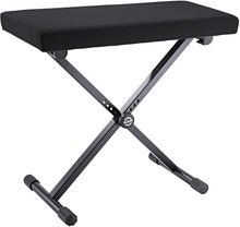 Svart keyboardbänk, kryssmodell, stål, tygsits, svart.
