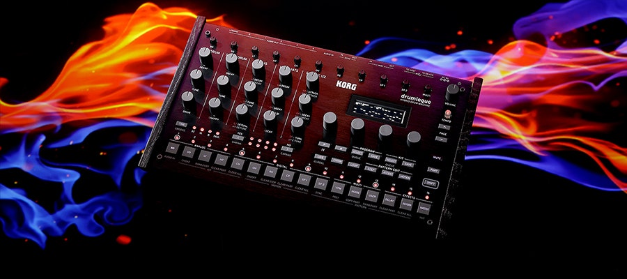 Trummaskin med 10 analoge lyder, step sequencer, 64 mønstre, sanntidssporing.