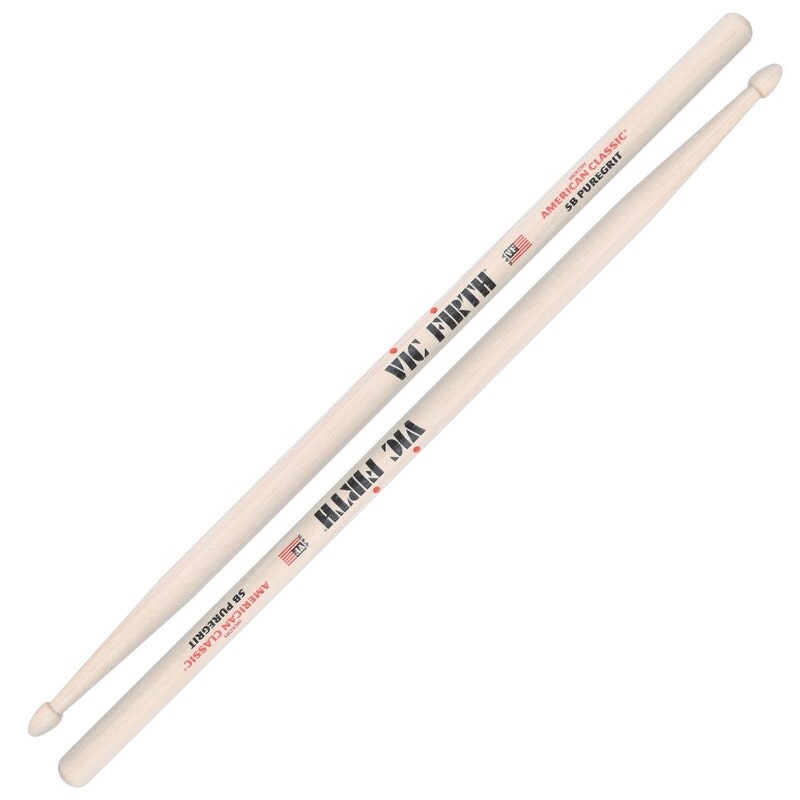 PureGrit är en olackad stock där Vic Firth istället använder en spetsell sandpappringsmetod för att få fram mjuke & lena trumpinnar med ett bra & behageligt grepp & en naturlig spelkänsla. I ävrigt är modellen exakt samma som en vanlig American Classic 5B.