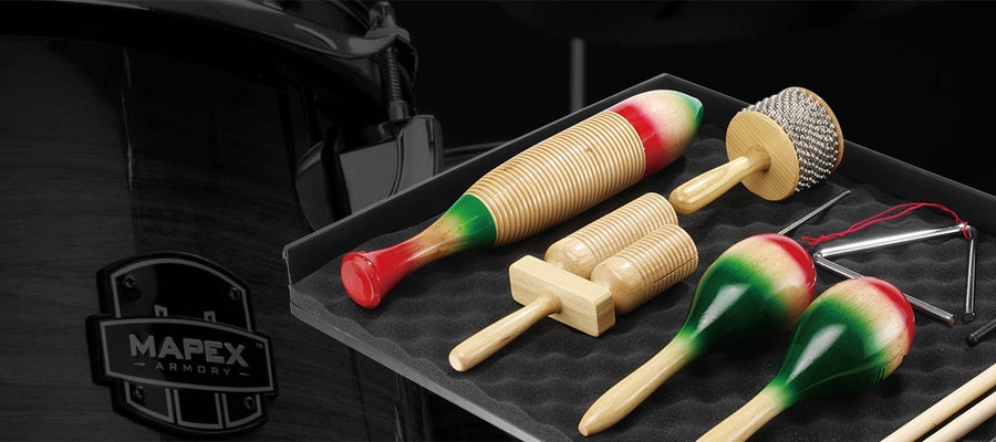 Percussionbord, svart, rejäl bordsskiva med filtklädd yta.