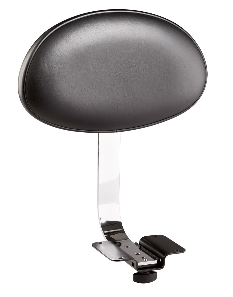 Stabil og komfortabel ryggstøtte til trommestolen Gomezz. Den komfortable ovale ryggstøtten er polstret med slitesterkt kunstlær. Justeringen av høyde og dybde på ryggstøtten er variabel ved bruk av den riflete skruen. Medfølger gjør jegngjerdelen som skrus fast på setet.