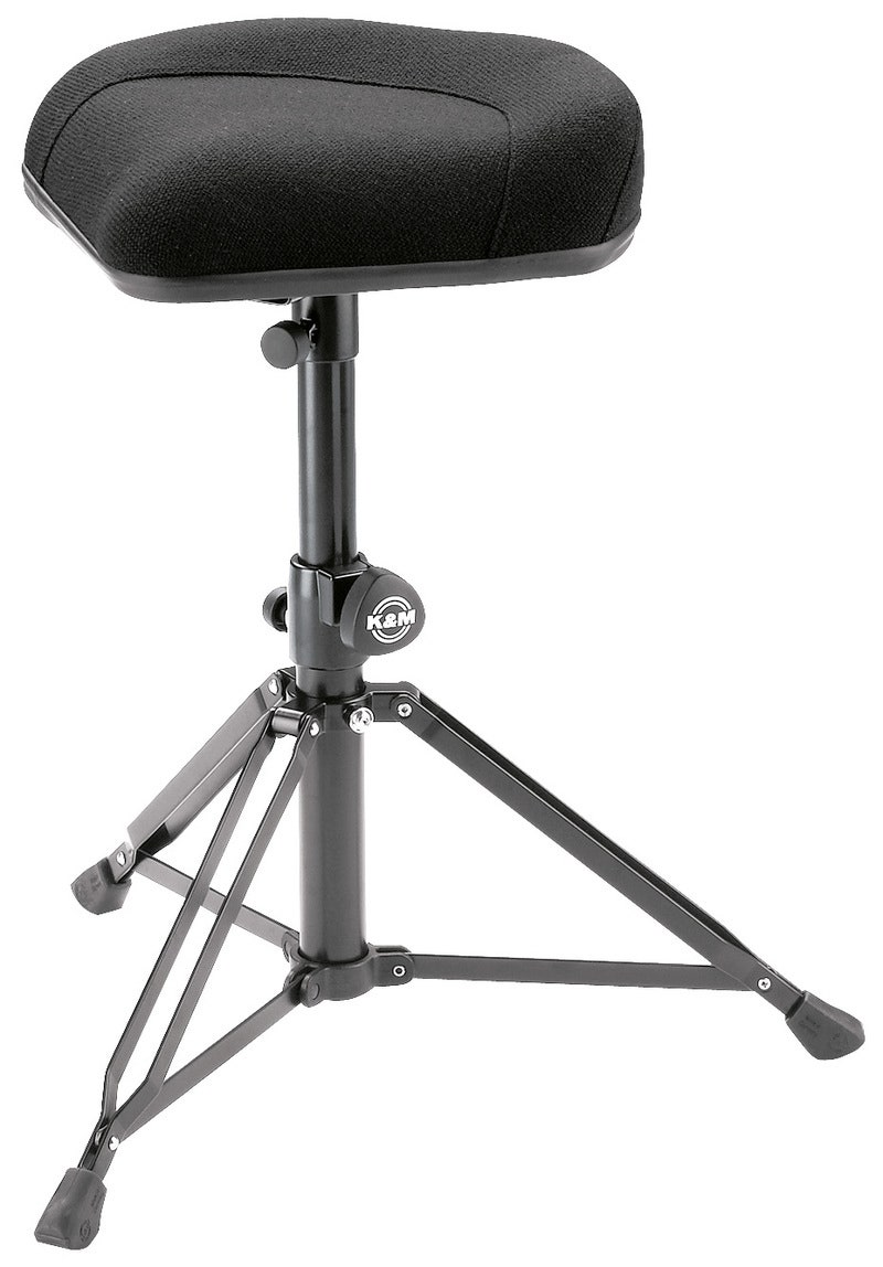 En robust, høykvalitets trommestol med ergonomisk utformet sete. Wobble-fri låsemekanisme for høydejustering er ekstremt funksjonell og brukervennlig. Stor 3-fots radius for best mulig stabilitet. Fullt sammenleggbar. Formen sete dekket med svart imitert skinn eller slitebestandig svart stoff.