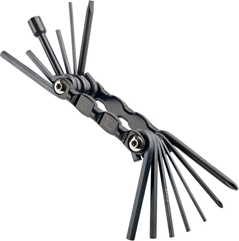 Artikkelnummer 25516451Multiverktøy for trommespilleren, 13 ulike nøkler, laget av stål, svart.