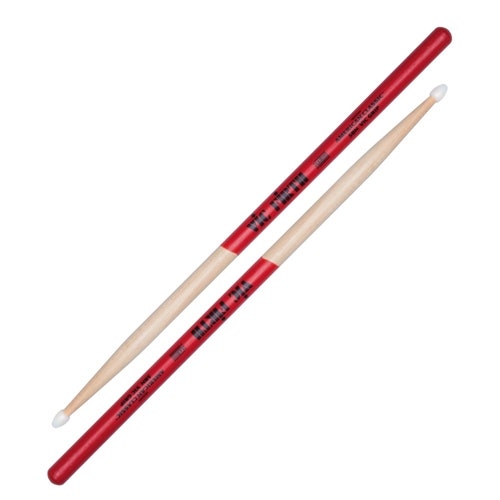 Artikkelnummer 1901251Vic Firth 5B Vic Grip Nylon Tip - Doppede trommestikker med rød Vic Grip for bedre og sikrere grep om trommestikkene!