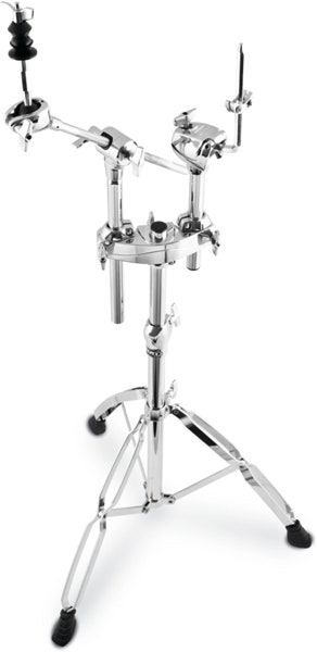 Universal ball-in-socket cymbal and tom arm tilters make positioning easy