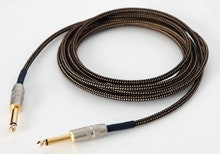 Svart tygbeklædt instrumentkabel med guldplaterte kontakter - Længde: 6m.