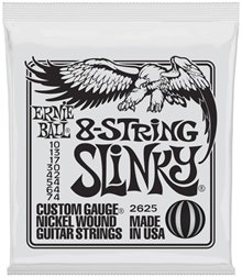 Sett for 8-strengs gitarer med litt tykkere A- og E6-strenger. 8-strengs Slinky 10-74 strengesett