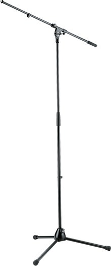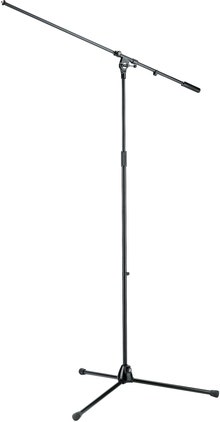 Mikrofonstativ med bom, hopfällbara ben, svart.