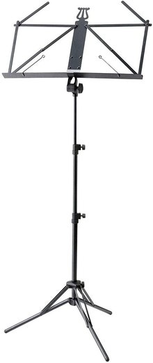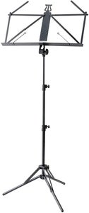 Stabilt, sammenleggbar notestander med fullt justerbar notplatta. Svart.