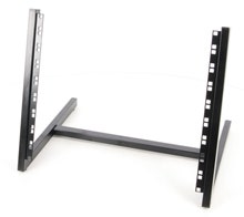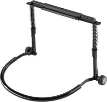 Bordsställ för hörlurar, svart, robust, tillverket i metall.