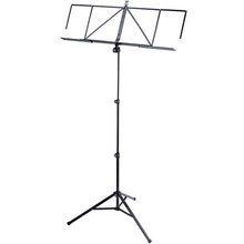 Orkesternotställ, tredelat, notplatta i stål & quicklock, svart.