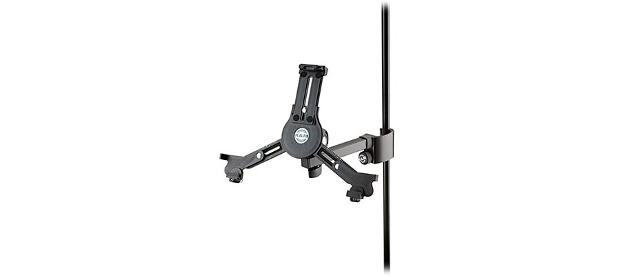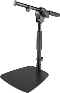 Mikrofonarm med 3/8 gjenger og feste for stativ med opp til 23 mm rørdiameter. Sort.