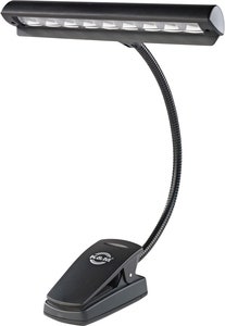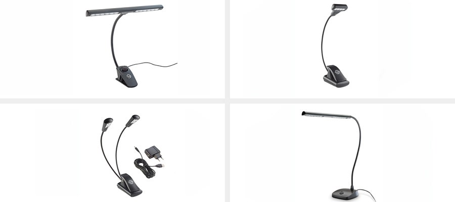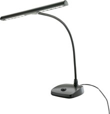 LED-belysning med varmvitt sken til piano, gullfarget, svanhals, ca 2500 lux, gjuten metallfot, 3m strømkabel.