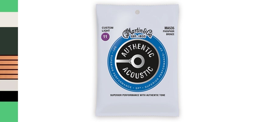 Martin Guitar MA535FX Authentic Acoustic Flexible Core Guitar Strings Phosphor Bronze - Custom Light